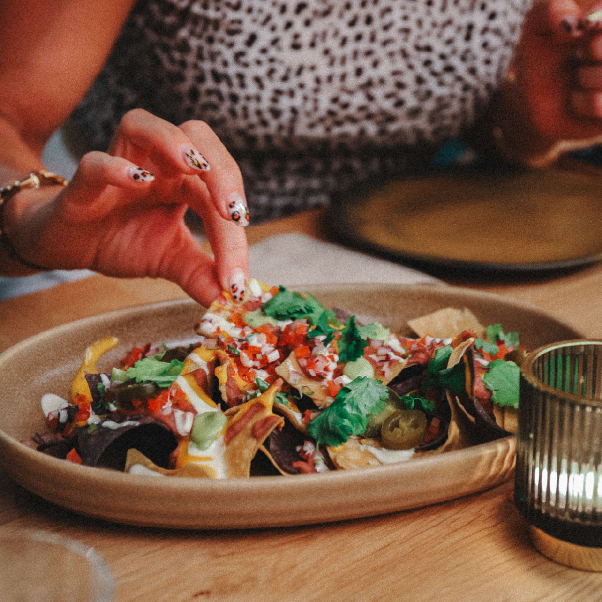 We also offer chilaquiles with the perfect level of spiciness, nachos with beans, sour cream, and fresh guacamole, as well as seasonal ceviches that provide freshness and balanced acidity. Handmade totopos are always crispy and perfect for accompanying any dish. Every creation seeks a balance between tradition and creativity, transporting diners straight to Mexico.
